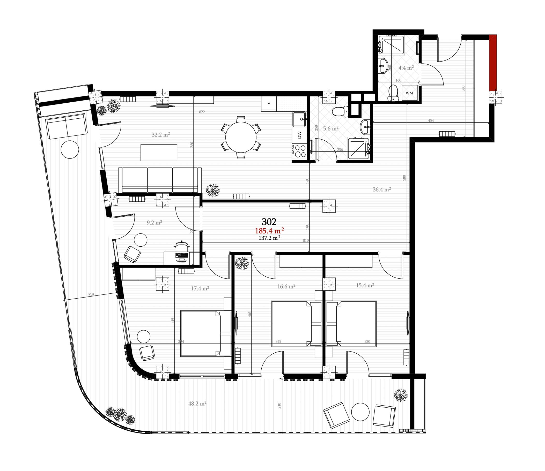 ტერასის ფართი: 48.2 მ²-დან — 74.7 მ²-მდე