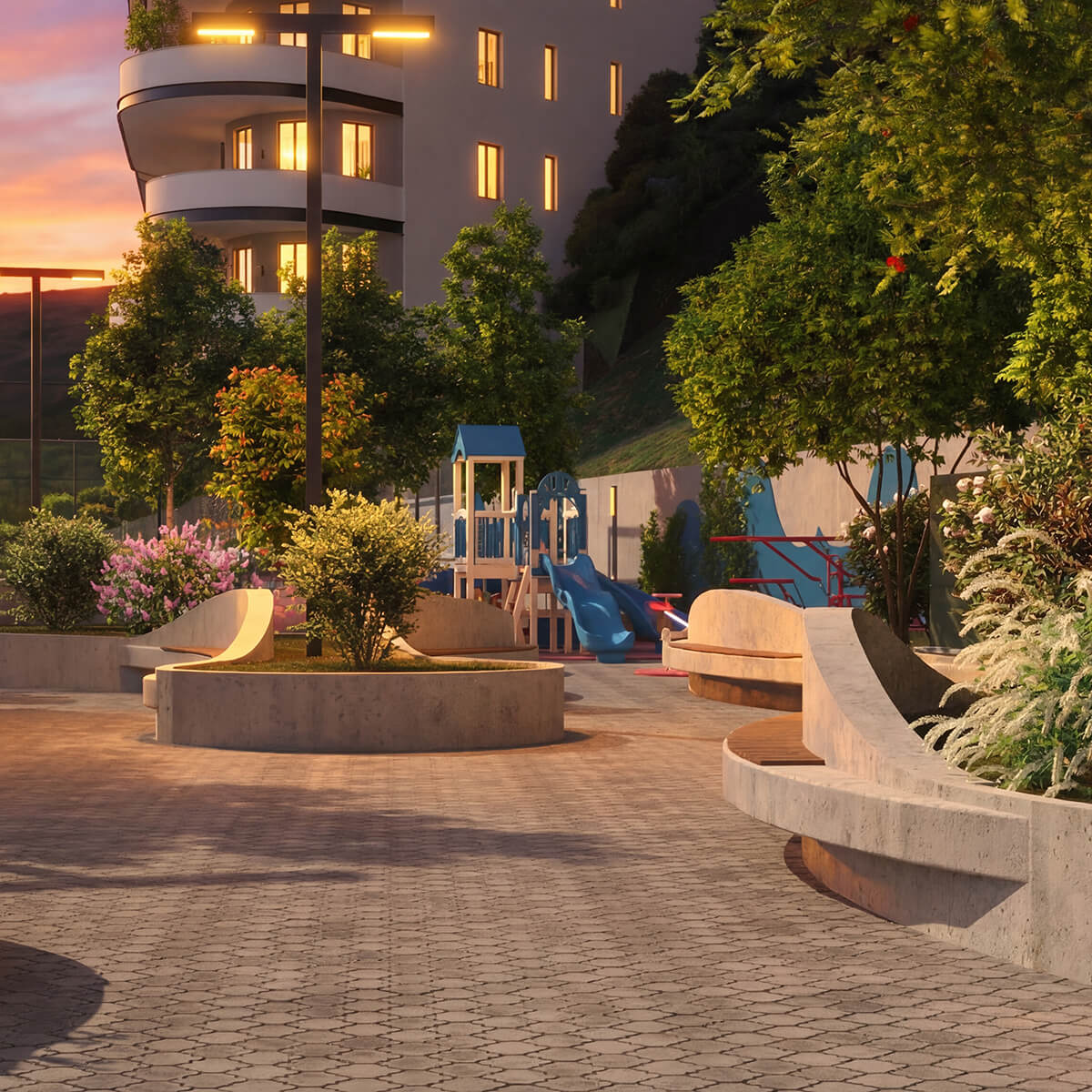 ბინები ბარდება მწვანე კარკასი+ კონდიციით, რომელიც მოიცავს როგორც გათბობის ქვაბს მილგაყვანილობით, ასევე სათავსოებს გათბობის ქვაბისა და კონდიცირების გარე ბლოკებისთვის.
